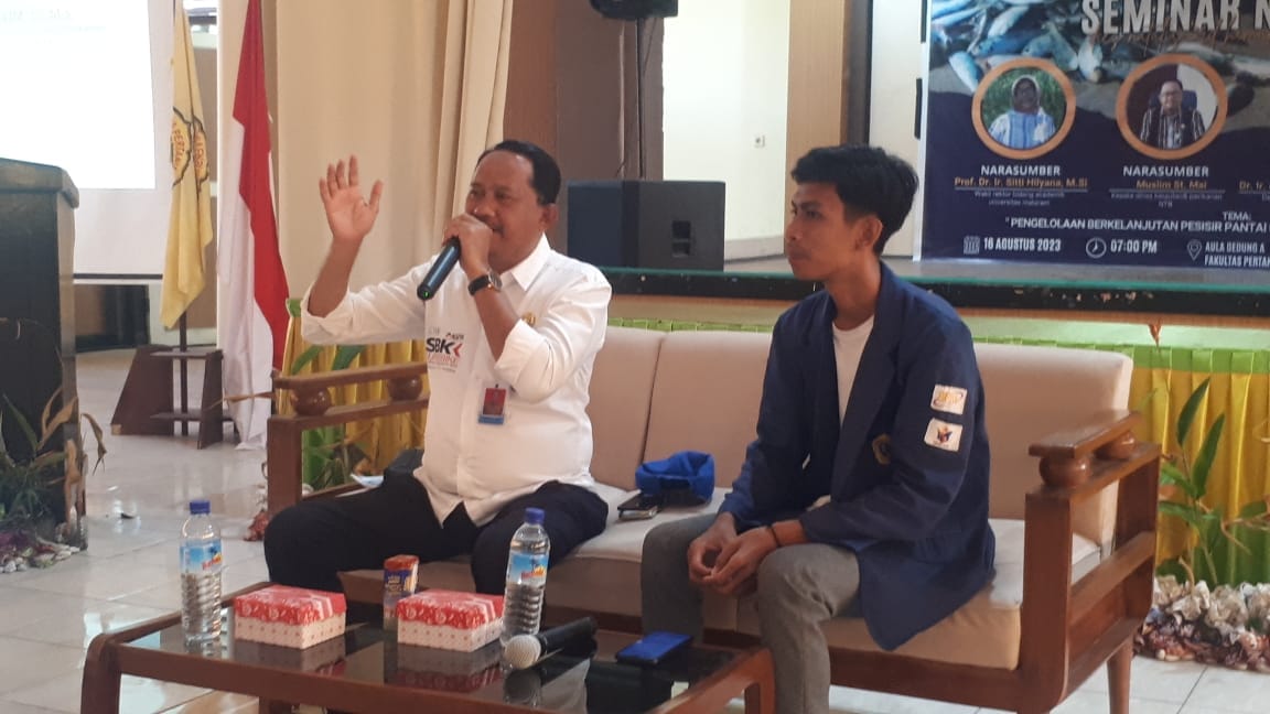 Kepala Dinas Kelautan dan Perikanan Provinsi NTB Bapak Muslim, ST.,M.Si menjadi narasumber pada acara Seminar Nasional Ilmu Kelautan Universitas Mataram dengan mengusung tema “Pengelolaan Berkelanjutan Pesisir Pantai Untuk Meningkatkan Ekspor Ikan”.