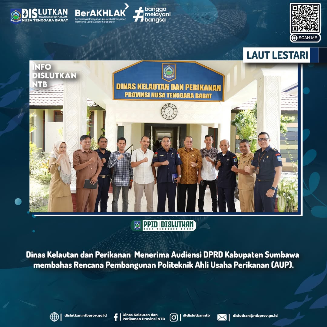 Mataram, 6 Mei 2025. Dinas Kelautan dan Perikanan Menerima Audiensi DPRD Kabupaten Sumbawa membahas Rencana Pembangunan Politeknik Ahli Usaha Perikanan (AUP).
