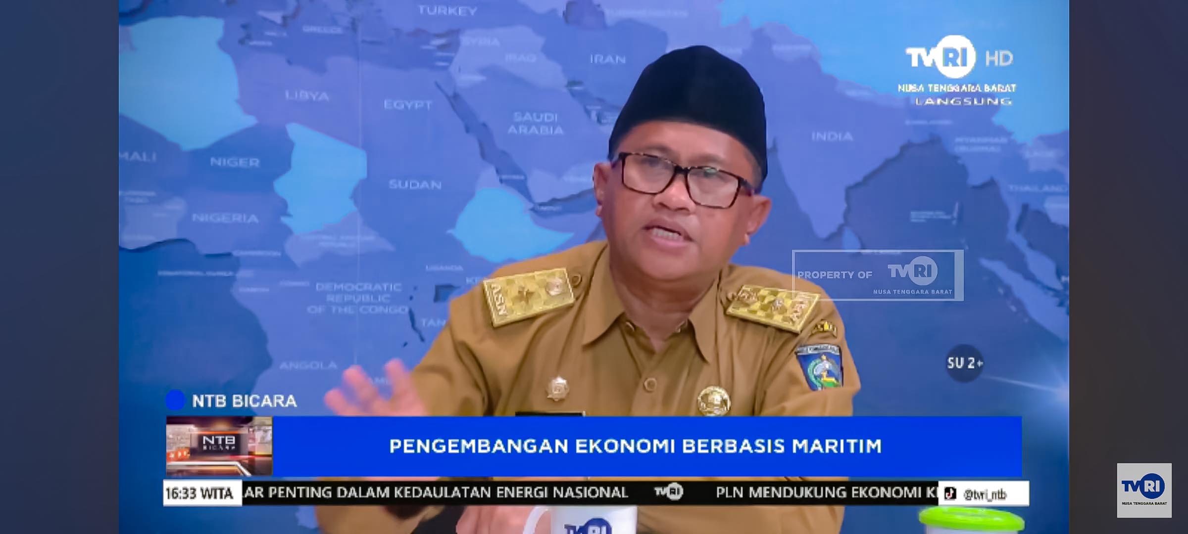 Mataram, 30 Juni 2025 — Kepala Dinas Kelautan dan Perikanan Provinsi NTB, Bapak Muslim, ST., M.Si., hadir sebagai narasumber dalam acara “NTB BICARA” yang diselenggarakan oleh TVRI NTB dengan topik Pengembangan Ekonomi Berbasis Maritim.