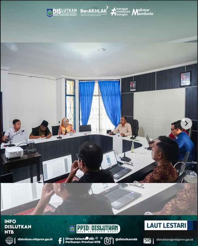 Mataram, 12 Maret 2026 – Kepala Dinas Kelautan dan Perikanan Provinsi Nusa Tenggara Barat memimpin rapat lanjutan dalam rangka penyempurnaan substansi batang tubuh Rancangan Peraturan Gubernur (Ranpergub) tentang sanksi administratif dan penyelesaian sengketa. Rapat ini diikuti oleh Tim Asistensi Utama dari Direktorat Jenderal Pengawasan Sumber Daya Kelautan dan Perikanan (PSDKP) Kementerian Kelautan dan Perikanan secara daring, selain itu hadir juga secara langsung Sekretaris Dinas, Kepala Bidang Pengawasan beserta staf, serta Tenaga Ahli dari Fakultas Hukum Universitas Mataram Bapak Dr. Risnain. Fokus pembahasan rapat ini menguraikan secara mendalam pasal demi pasal guna memastikan substansi Ranpergub tersusun secara komprehensif, selaras dengan ketentuan peraturan perundang-undangan yang berlaku. Dalam arahannya, Kepala Dinas menekankan proses percepatan finalisasi Ranpergub sebagai bagian dari upaya pemerintah daerah agar bisa segera di aplikasikan pada kegiatan pengawasan di sektor kelautan dan perikanan.