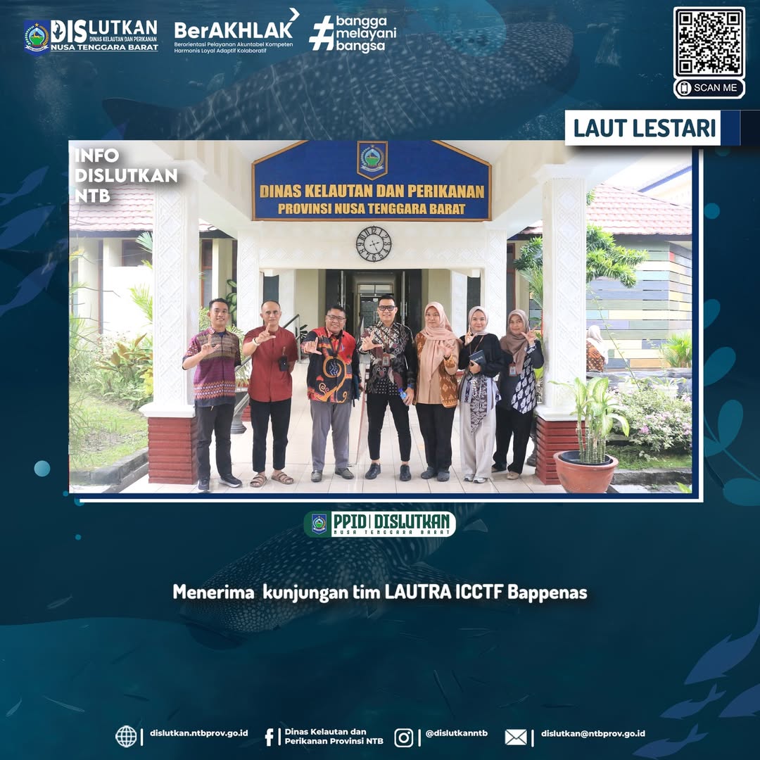 Mataram, 8 Mei 2025. Mataram, 8 Mei 2025. Plt.Kepala Bidang Pengelolaan dan Pengawasan Sumber Daya Perikanan dan Pulau-Pulau Kecil (P2SDP3K), Bapak Lalu Parjadinata, S.St.Pi.MM menerima kunjungan tim LAUTRA ICCTF Bappenas di Mataram. Provinsi NTB menjadi salah satu dari enam Provinsi yang menjadi fokus pengumpulan data dipilih berdasarkan kontribusinya yang strategis terhadap pengembangan ekonomi biru nasional. sebagai bagian dari pelaksanaan kajian Blue Public Expenditure Review (Blue PER). Kegiatan ini bertujuan untuk menilai efektivitas, efisiensi, dan keberlanjutan belanja publik di sektor konservasi kelautan, perikanan, dan pariwisata bahari.