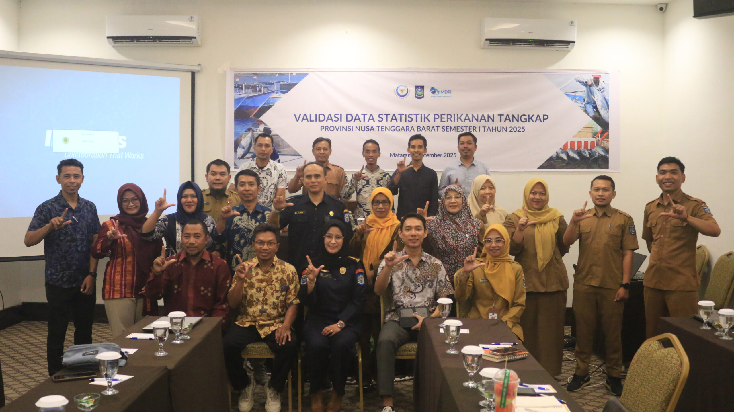 Mataram,16 September 2025 – Sekretaris Dinas Kelautan dan Perikanan Provinsi Nusa Tenggara Barat (NTB), Hj. Hikmah Aslinasari, ST., MM., membuka kegiatan Pertemuan Validasi Nasional Data Statistik Perikanan Tangkap Semester I Tahun 2025 yang dilaksanakan bekerja sama dengan Yayasan Masyarakat dan Perikanan Indonesia (MDPI).