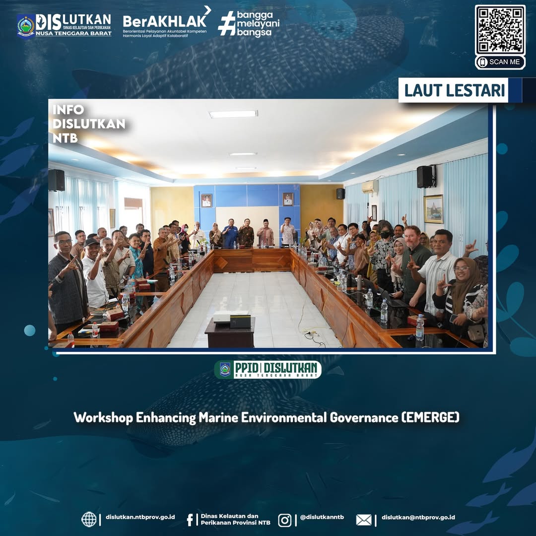 Mataram, 15 April 2025 – Workshop Enhancing Marine Environmental Governance (EMERGE) diselenggarakan di Ruang Rapat Mutiara, Dinas Kelautan dan Perikanan Provinsi NTB. Acara ini dihadiri oleh sejumlah pejabat daerah provinsi dan kabupaten/kota dan organisasi terkait, termasuk Kepala Bappeda Provinsi NTB, Kepala Dinas Kelautan Perikanan Provinsi NTB, Kepala Dinas Ketahanan Pangan, Perwakilan Dinas Sosial Provinsi NTB serta berbagai perwakilan dari lembaga seperti KNTI, BRIN, IPB University, dan Wildlife Conservation Society (WCS). Kegiatan ini juga melibatkan akademisi , serta forum-forum ilmiah lainnya.